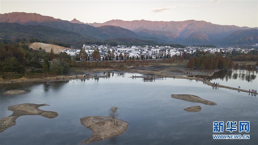 11月14日拍摄的安徽黟县奇墅湖晨景(无人机航拍)。新华社记者张笑宇摄