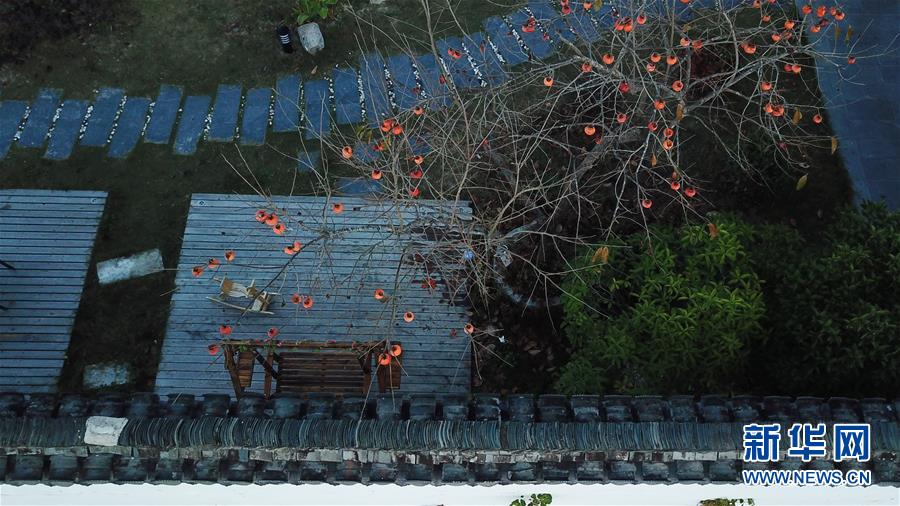 这是11月15日无人机拍摄的安徽黟县宏村一家民宿的院落。新华社记者张端摄