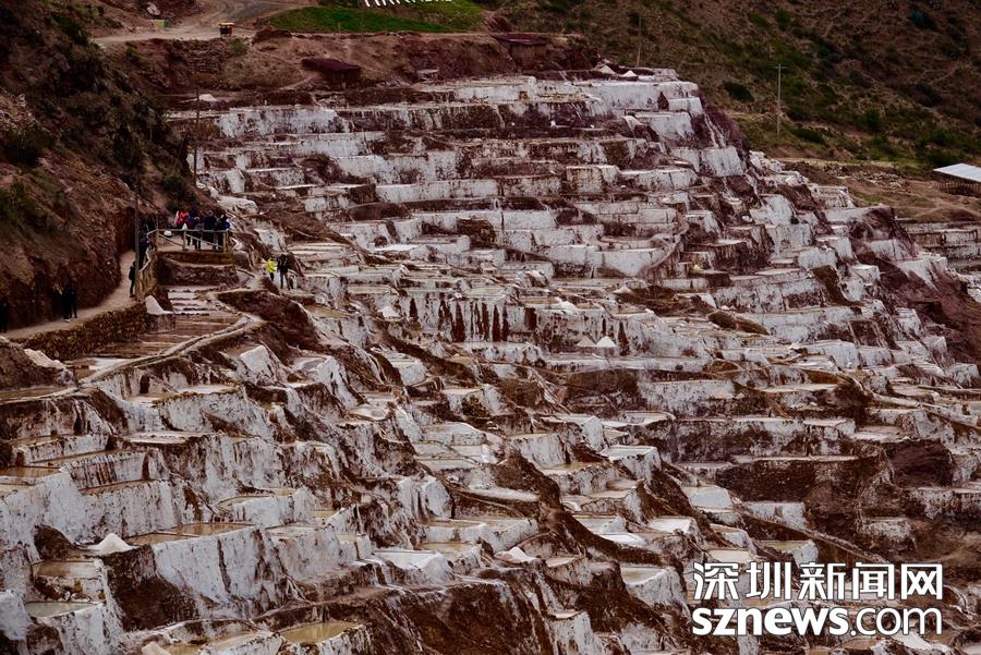 大面积盐池闪闪发光,格外抢眼,宛如镶嵌在安第斯山谷中的白色马赛克。李仁奇摄