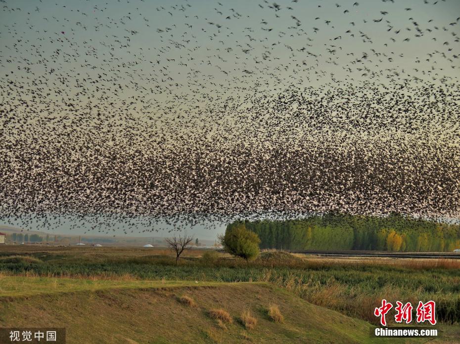 土耳其成群椋鸟迁徙 黑压压一片遮挡天空