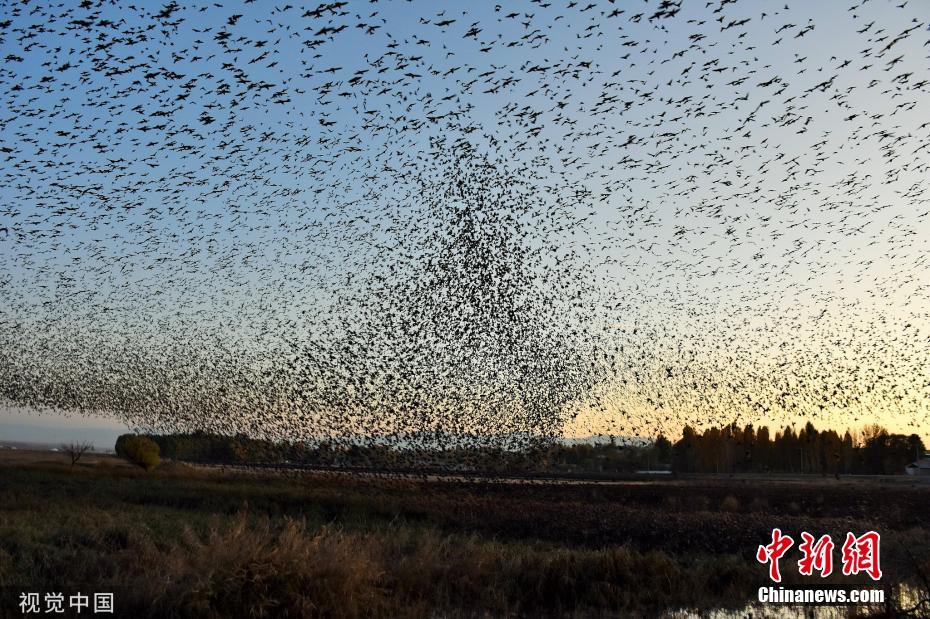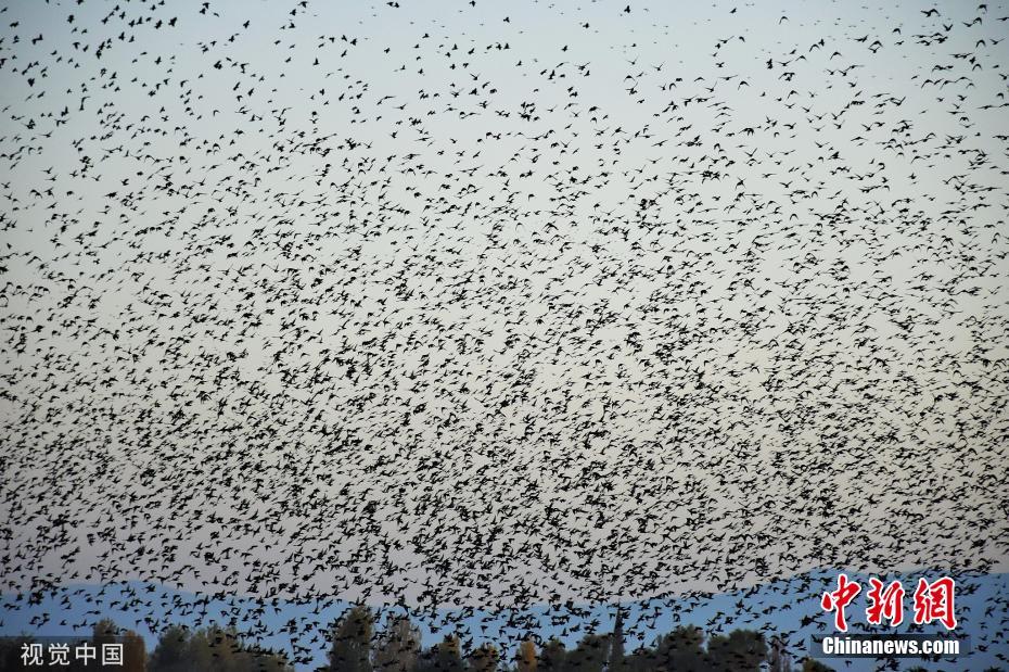 土耳其成群椋鸟迁徙 黑压压一片遮挡天空