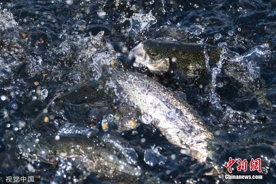 美加州鲑鱼迎来洄游产卵季 集体逆流而上景象壮观