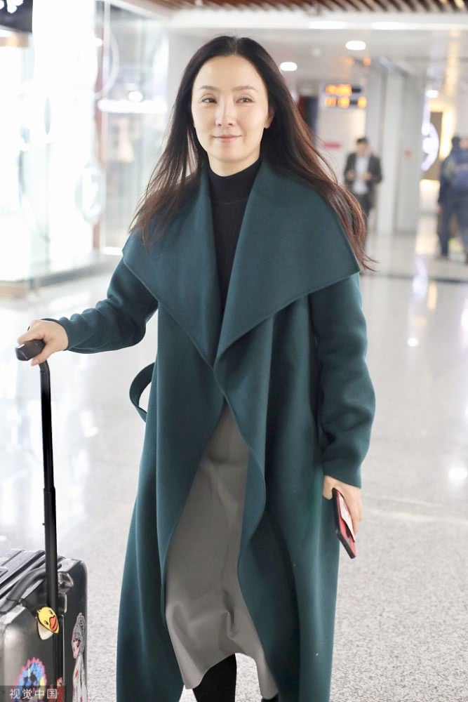 当天,陶虹身穿一件深绿色的大衣,长发披肩笑容亲切,内搭一件黑色紧身衣,脚踩一双黑色的毛绒拖鞋,居家范儿十足。