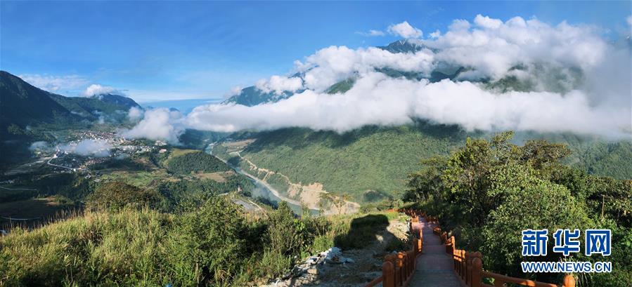 远眺墨脱县城(左)(4月10日手机全景拍摄)。新华社记者周锦帅摄