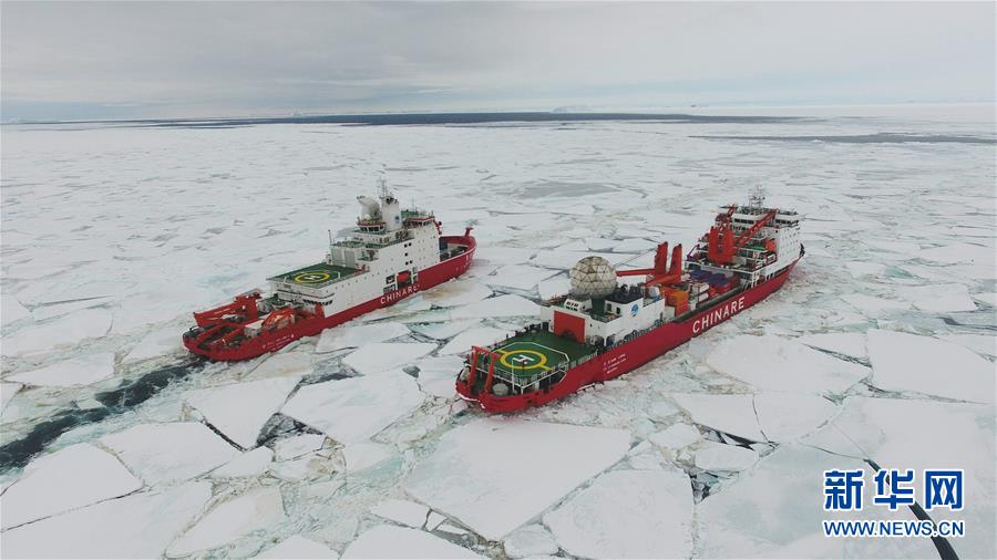 “雪龙兄弟”抵达中山站附近海域 “雪龙2”号首次破冰作业