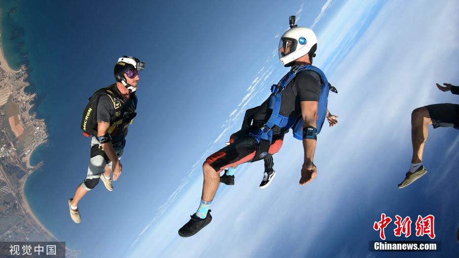 11月20日讯,以色列一群跳伞者在从一万三千英尺(约3962米)的高空进行跳伞,坠落时尽情嬉戏、舞动和翻跟斗。图片来源:视觉中国