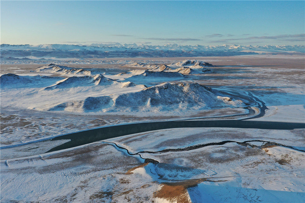 2019年11月19日,新疆巴州和静县,初冬的巴音布鲁克九曲十八弯银装素裹,宛如走进冰雪童话世界。