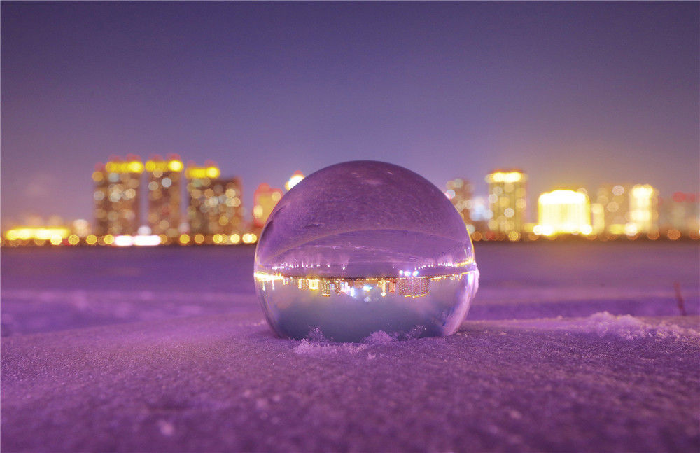 2019年11月19日,哈尔滨市,初冬时节,连续落雪,穿城而过的松花江,覆雪后晶莹如同玉带。远处,是松花江南岸璀璨的灯火。