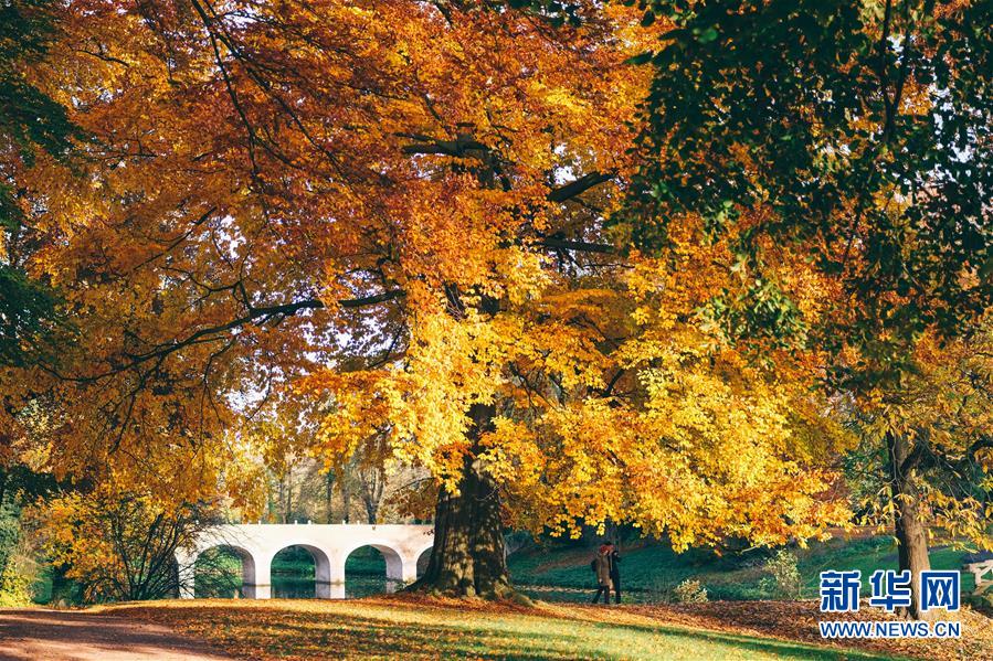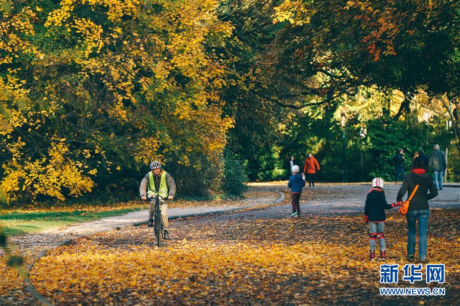 11月9日,游客在比利时布鲁塞尔的沃吕沃公园欣赏秋景。 深秋时节,比利时首都布鲁塞尔景色怡人。 新华社记者 张铖 摄