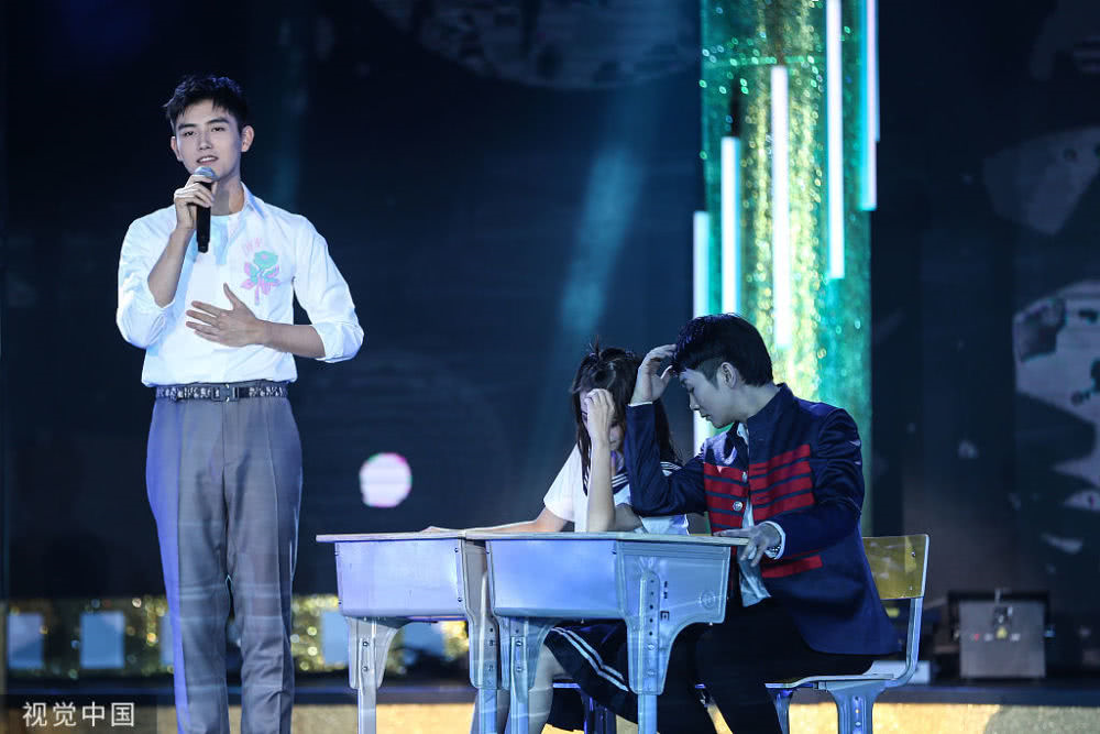陈飞宇穿白衬衫帅气有型,少年感十足。