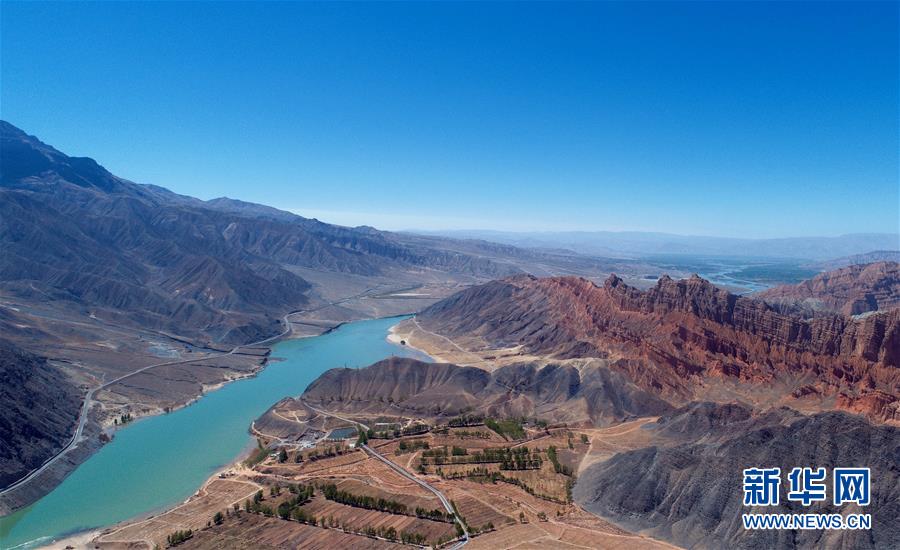 这是位于贵德县尕让乡松巴村附近的丹霞地貌一角(4月16日无人机拍摄)。新华社记者张宏祥摄