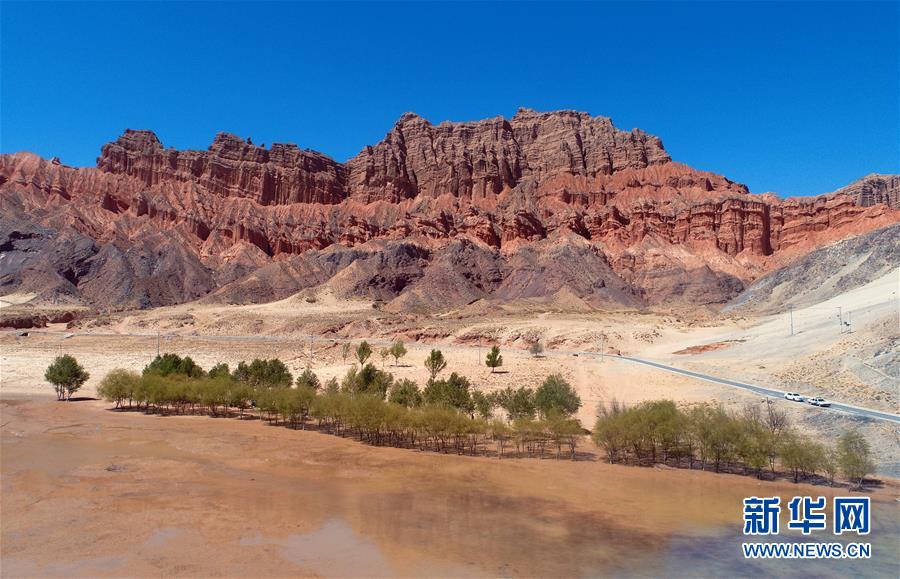 这是位于贵德县尕让乡松巴村附近的丹霞地貌(4月16日无人机拍摄)。新华社记者赵玉和摄