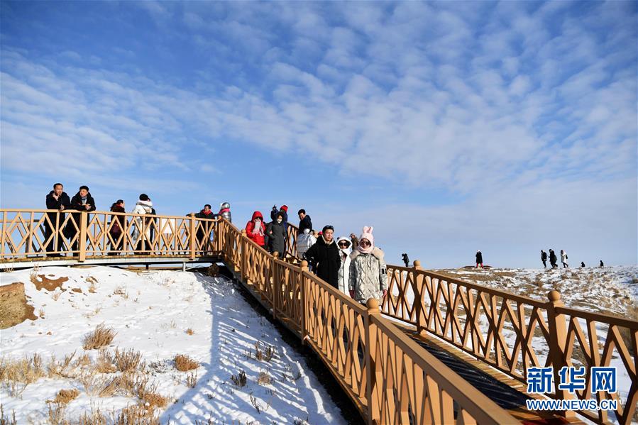 11月26日,来自全国百家旅行社的旅游业界人士在新疆福海县乌伦古湖海上魔鬼城景区参观。新华社记者沙达提摄