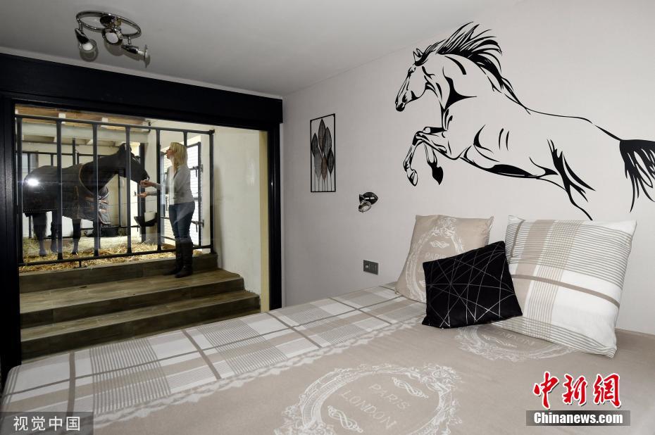 当地时间2019年11月25日,法国桑图瓦地区弗赖斯内,一家特别的“酒店”开张,入住者可以透过玻璃清楚的看到马厩里的马,还可以跟马亲密接触。图片来源:视觉中国