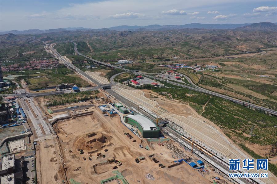 建设中的京张高铁下花园北站(5月29日无人机拍摄)。新华社记者邢广利摄