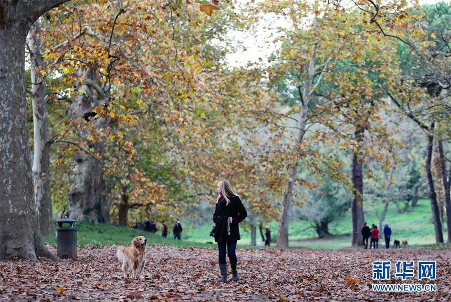 11月26日,在意大利罗马,人们游览博尔盖塞公园。 新华社记者 程婷婷 摄