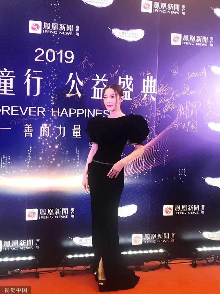 佘诗曼穿黑礼裙身材姣好气质佳。