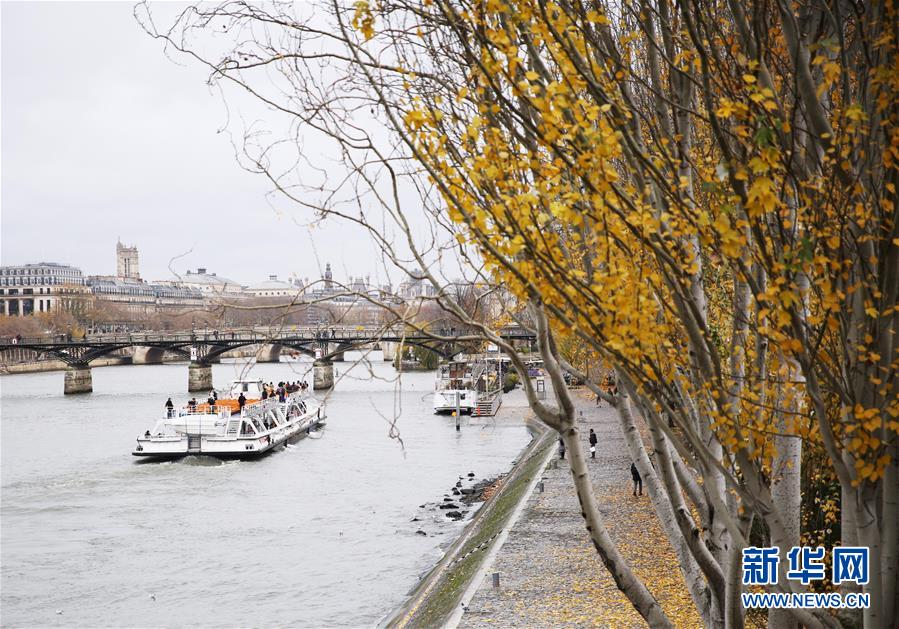 11月27日,在法国巴黎,游船在塞纳河上行驶。新华社记者高静摄