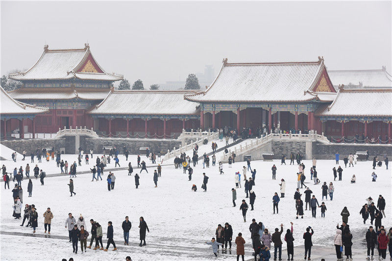 初雪后故宫银装素裹 游客排队打卡