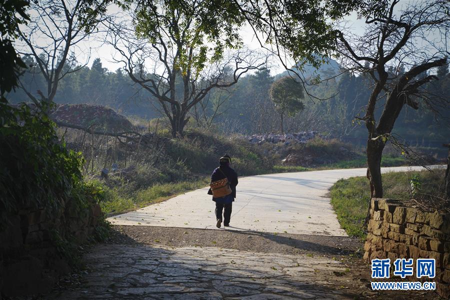 11月28日,一名大糯黑村村民行走在村口。新华社记者毛思倩摄