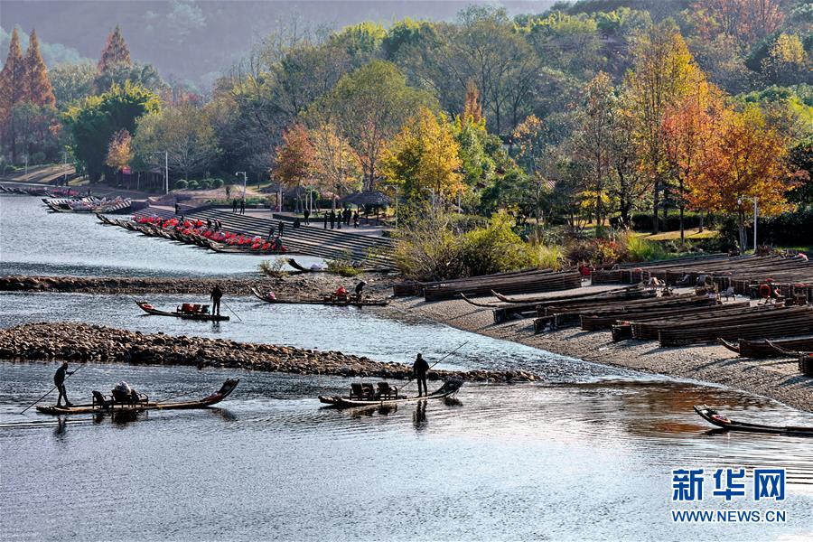 冬日的武夷山景区竹筏码头(12月2日摄)。