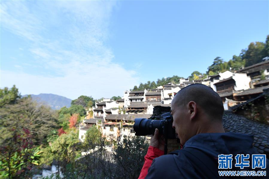 11月6日,乡村摄影师曹加祥在篁岭村采风。新华社记者胡晨欢摄