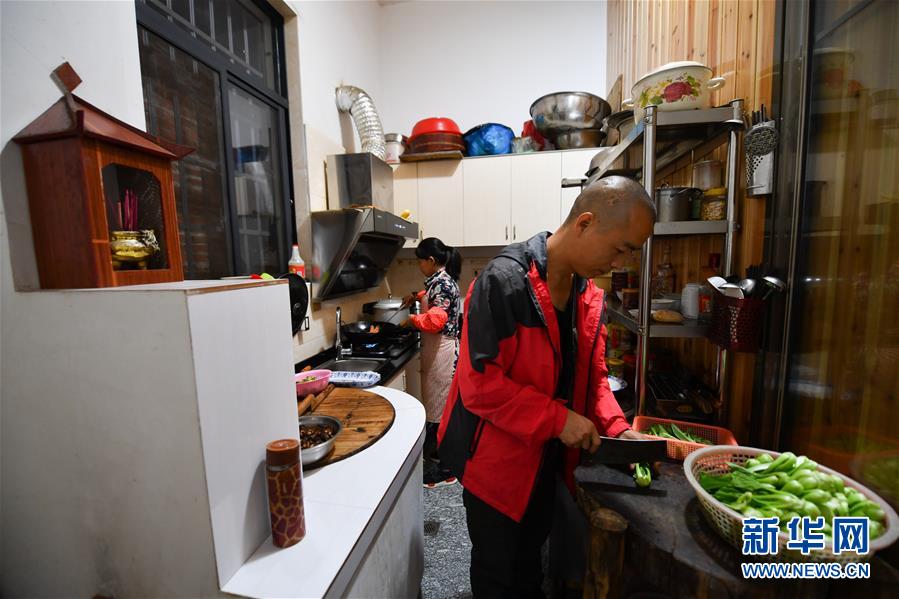 11月6日,乡村摄影师曹加祥在自家的民宿内为游客准备晚餐。新华社记者胡晨欢摄