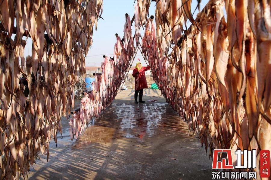 2019年12月3日报道,进入冬季,正是晾晒鱼干的大好时节,江苏省连云港市赣榆区柘汪镇马站村村民开始晾晒鱼干。