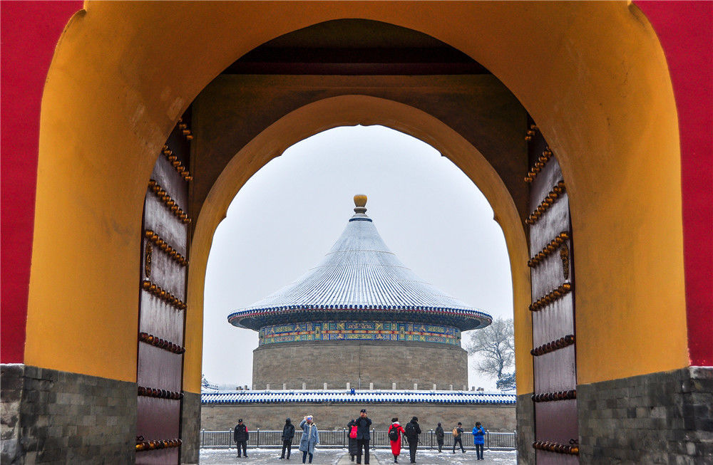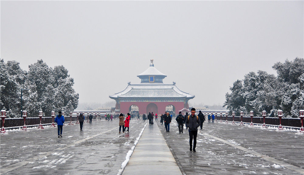 2019年11月30日,北京,天坛公园里观雪赏景的市民络绎不绝。乔健/千龙图像/视觉中国