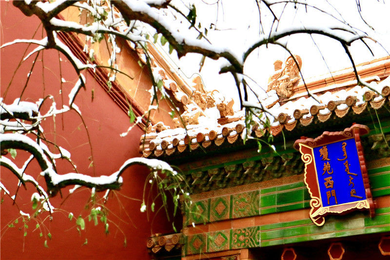 初雪后故宫银装素裹游客排队打卡
