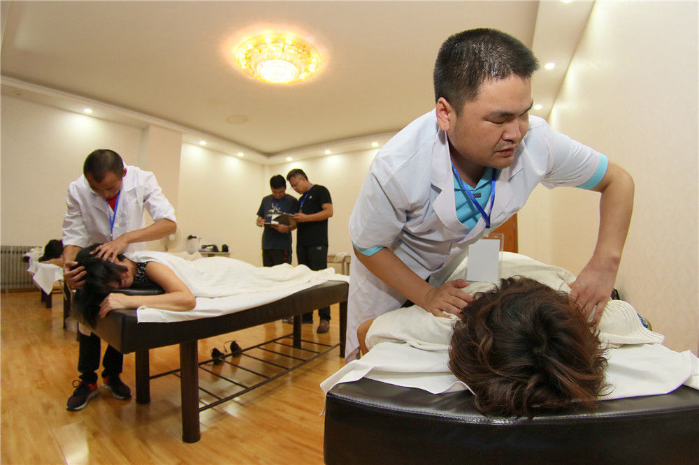 2017年9月13日,山东烟台,参赛残疾人在进行保健按摩项目的比赛。唐克/视觉中国