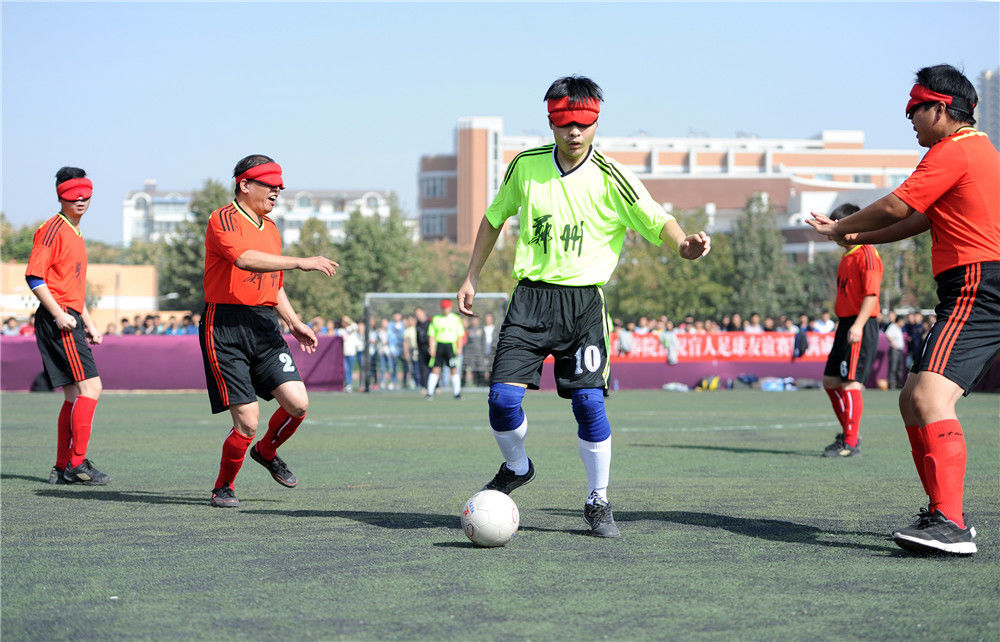 2014年10月15日,国际盲人节,郑州市残联在74中举办了一场盲人足球友谊赛,并通过这个活动宣传盲人运动,活跃盲人生活,号召更多的盲人走出相对封闭的世界,参与更多力所能及的有益的社会活动。沙浪/视觉中国