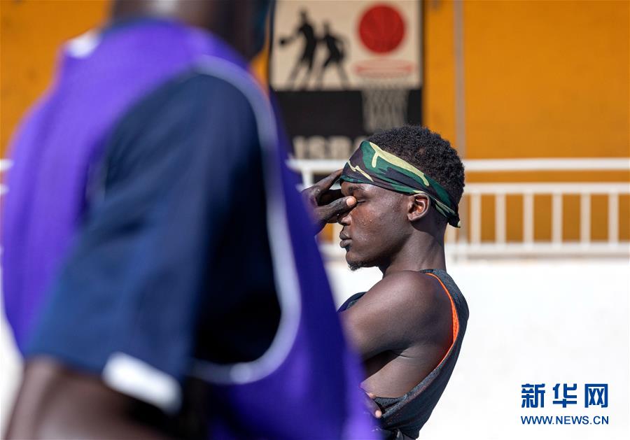 11月25日,在南苏丹朱巴篮球场,球员在篮球场上比赛。新华社记者王腾摄
