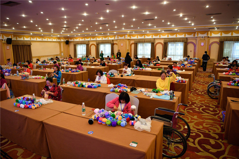2017年10月24日,昆明,手工编织比赛现场。当日,2017年中国技能大赛—“宜生到家杯”全国残疾人岗位精英职业技能竞赛在昆明开赛。共有来自国内35个代表队共计450名选手,参加此次竞赛活动。比赛设置计算机程序设计、茶艺、手工编织、剪纸4个比赛项目。刘冉阳(云南分社)/中新社/视觉中国