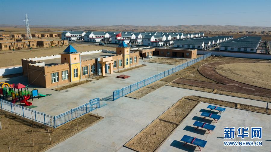 这是新疆于田县达里雅布依乡易地扶贫搬迁安置点的幼儿园和小学(11月19日无人机拍摄)。从沙漠中搬出来的孩子可以在这里就近就读幼儿园及小学一至三年级。 新华社记者 沈伯韩 摄