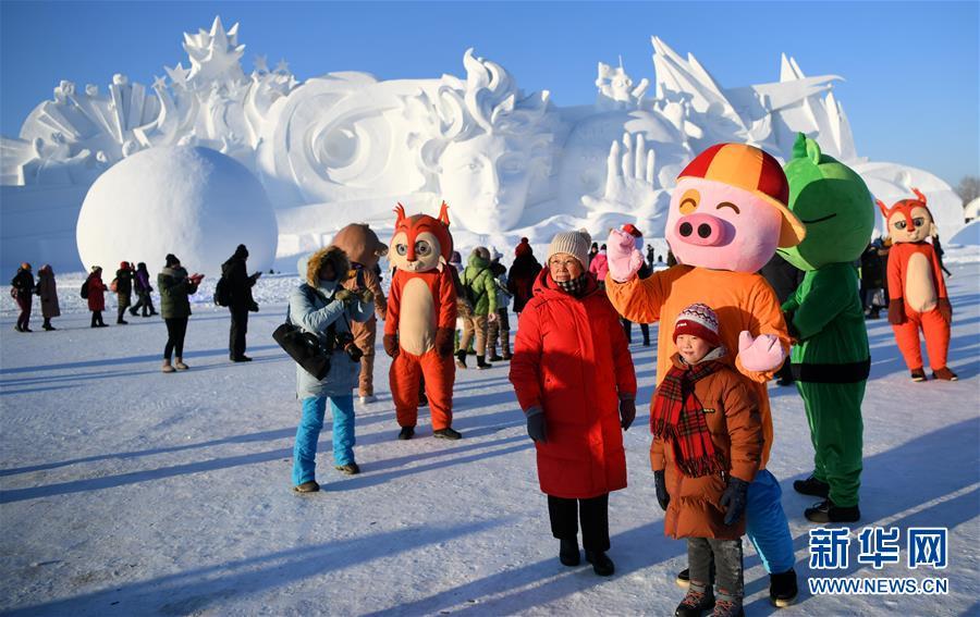 12月29日,游客在太阳岛雪博会园区游玩拍照。新华社记者王建威摄