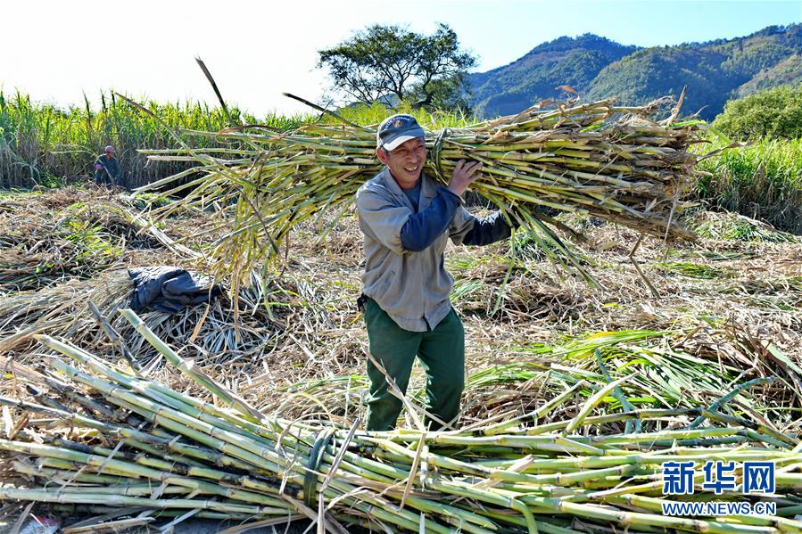 12月7日,松溪县郑墩镇万前村蔗农在收割“百年蔗”。近期,福建省松溪县郑墩镇万前村特色甘蔗品种“百年蔗”进入采收期,当地农民砍蔗制糖,一派繁忙景象。近年来,万前村大力发展蔗糖生产,带动农民脱贫致富,目前全村种植“百年蔗”面积达420亩。新华社记者张国俊摄