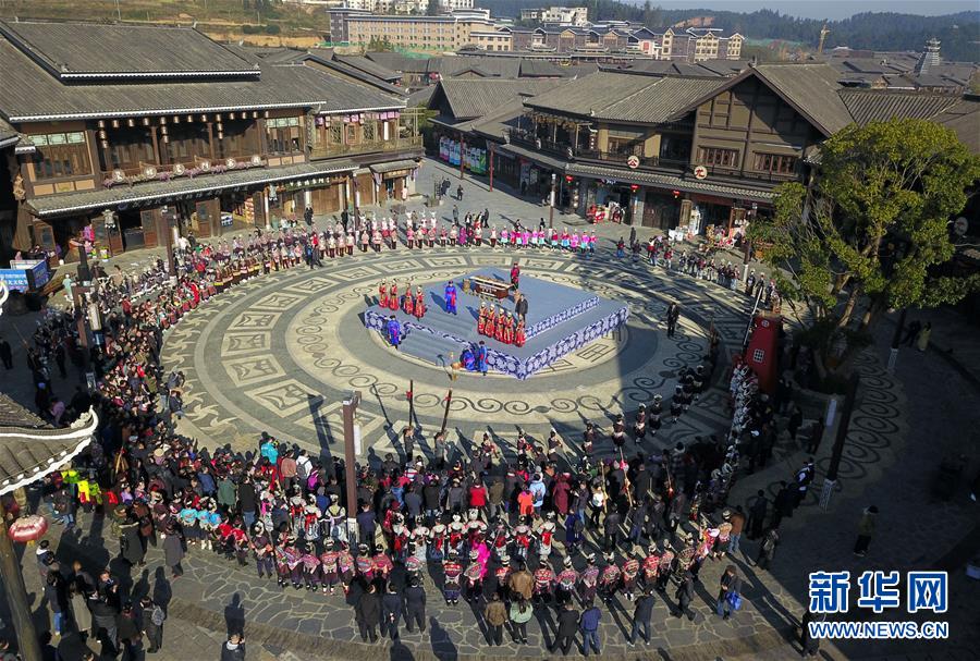 12月7日无人机拍摄的丹寨县“祭尤节”活动现场。新华社记者 杨文斌 摄
