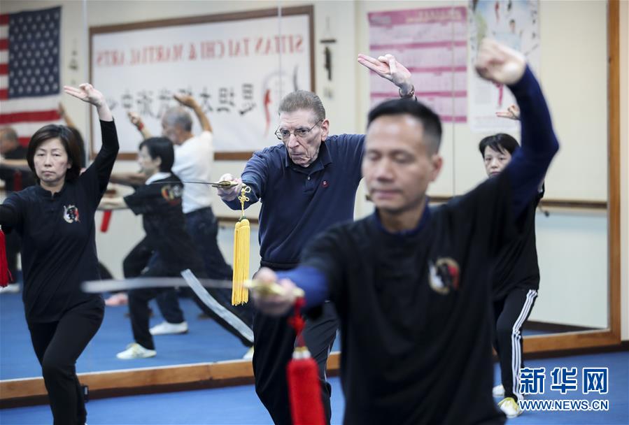 陈思坦在位于美国纽约长岛的思坦太极武术中心带学员练习太极剑(11月20日摄)。11月的纽约已进入初冬,位于美国纽约长岛的思坦太极武术中心依然一片红火景象,学员们从5岁的孩童到80多岁的老人,操练着太极拳、太极剑、长拳等武术招式。这里的主人陈思坦、林旭夫妇,也从早忙到晚,精心指导每一位学员的一招一式。6岁习武,22岁成为中国全国冠军,26岁获得首个世界冠军……直到30岁退役,陈思坦在运动员生涯中曾获得过32次国内外各类武术大赛冠军。36岁那年,怀着以太极拳和中国武术为媒介向世界推广中国文化的梦想,陈思坦到美国纽约寻找新的舞台。经过十多年的艰苦打拼,陈思坦夫妇目前在纽约长岛、法拉盛和曼哈顿都开设了长期的课程,思坦太极注册在编的各个年龄段的学员近千人,有些“高徒”现在自己也开班授课,将太极推向更多地方。陈思坦夫妇现在思考更多的是如何将太极和武术推广给更多的美国人,并让他们理解其中蕴含的平衡、和谐的中国文化理念。他们创办了纽约太极健身气功活动日,在各类学校和社区开设太极或者武术课程,并利用美国的亚太裔文化月和多元文化节举行武术和太极表演和体验课程,让更多美国人亲眼看到、亲身体会中国武术的魅力。从2011年起,他们还参与创办了纽约太极大赛,如今已举行九届,吸引了美国、加拿大和中国国内的队伍参赛,影响力逐渐扩大。新华社记者王迎摄