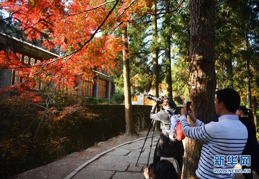 11月17日,游客在庐山如琴湖旁拍照。新华社记者张浩波摄