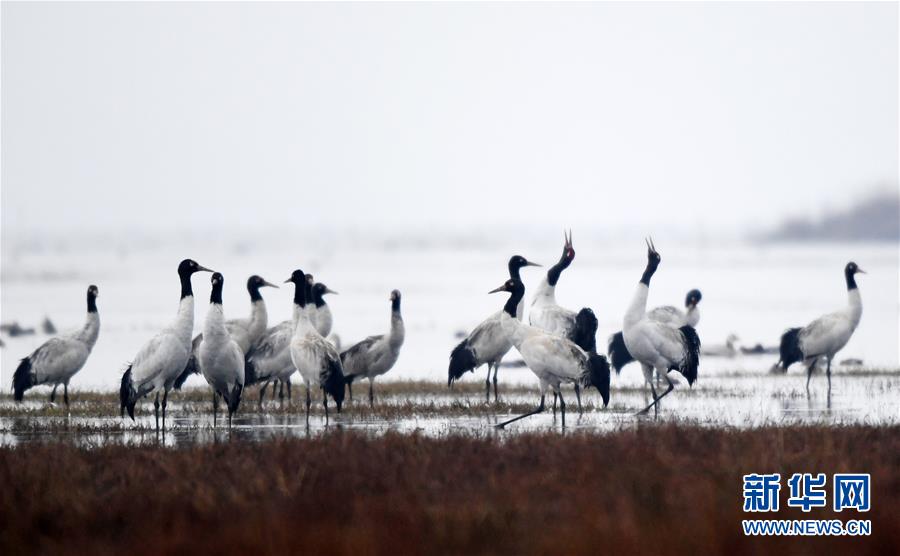 12月11日在贵州草海保护区拍摄的黑颈鹤。新华社记者杨文斌摄