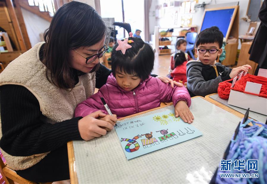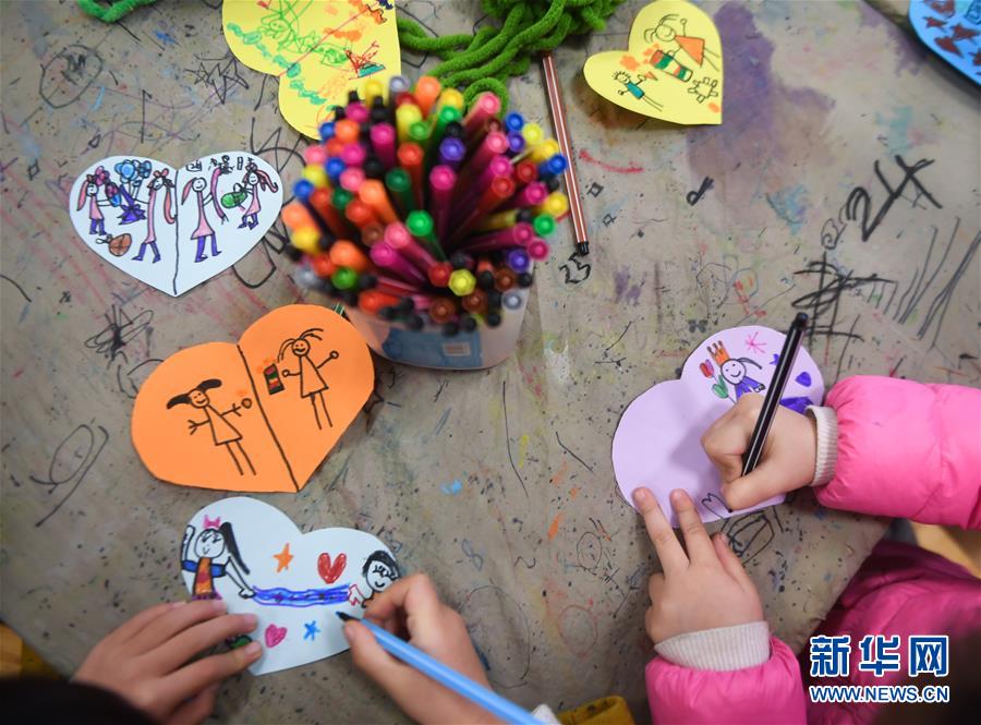12月11日,小朋友在老师的带领下绘制爱心卡片,准备随围巾一起寄给西藏的小朋友们。新华社记者徐昱摄