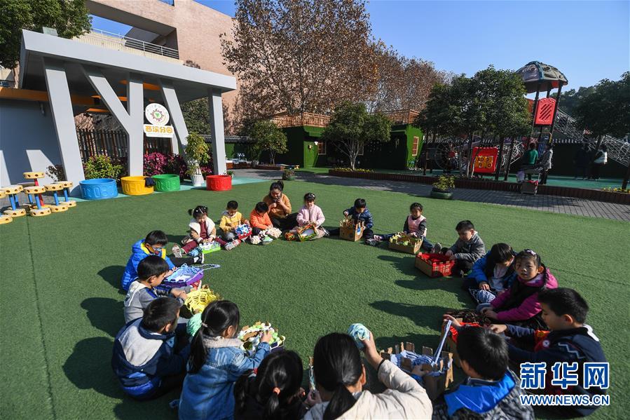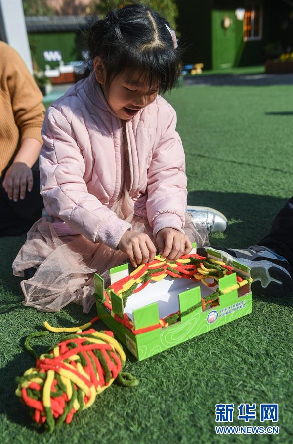 近日,浙江大学后勤集团幼教中心西溪幼儿园开展“编织爱心围巾送温暖”活动。小朋友们在老师的带领下编织毛线围巾和帽子,并将于12月中旬把它们寄给西藏自治区山南市结对幼儿园的孩子们,传递冬日里的温暖。新华社记者徐昱摄