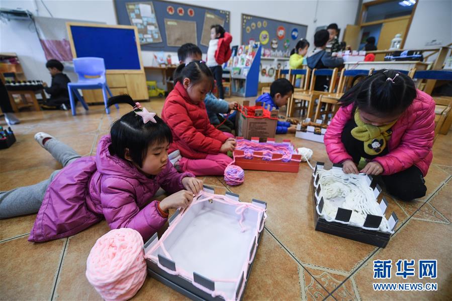 12月11日,小朋友们在老师的带领下编织爱心围巾。新华社记者徐昱摄
