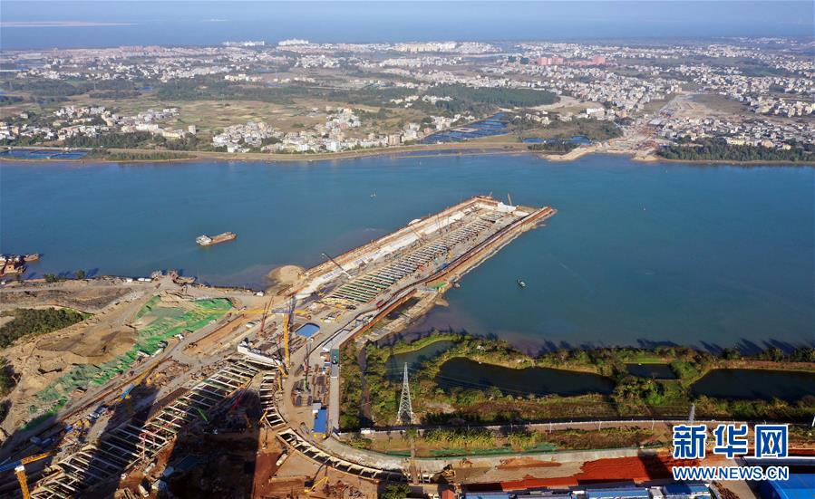 正在施工的海口文明东越江通道项目(12月14日无人机拍摄)。 新华社记者 郭程 摄