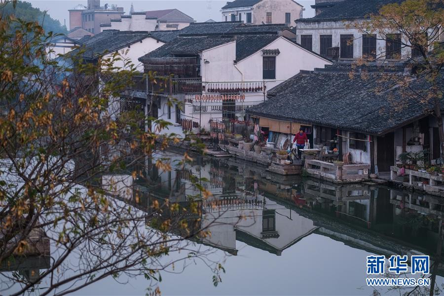 12月12日拍摄的晨曦中的安昌古镇。新华社记者徐昱摄