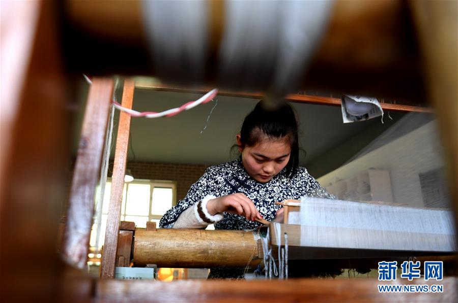 12月14日,在河北定州缂丝传习基地,工作人员在制作缂丝。 新华社记者 王晓 摄