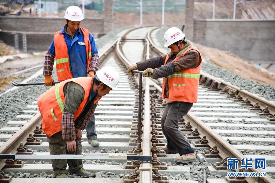 12月17日,中铁八局建设者在改貌铁路口岸施工。 新华社记者 刘续 摄