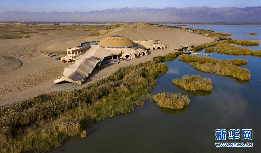 位于宁夏石嘴山市平罗县境内的沙湖景区,依沙傍水呈现出独特的魅力(10月30日无人机拍摄)。 新华社记者 冯开华 摄