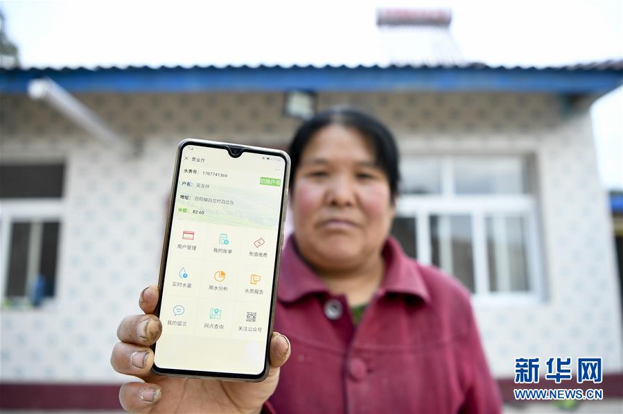 在宁夏固原市彭阳县白阳镇白岔村,村民展示可以“手机买水”的界面(10月11日摄)。 新华社记者 冯开华 摄